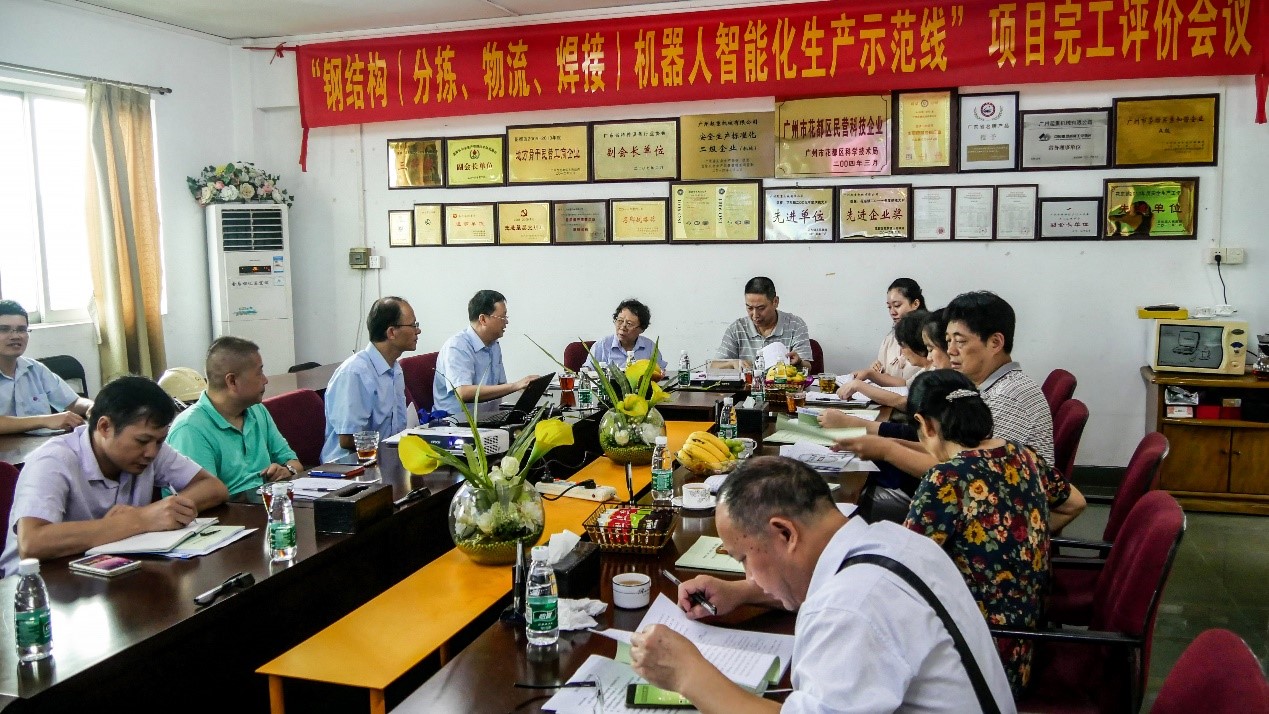 白云區(qū)科技工業(yè)商務和信息化局組織專家來公司《對鋼結(jié)構(gòu)(分揀、物流、焊接)機器人智能化生產(chǎn)示范線》項目進行了舉行驗收。專家們首先對項目進行了現(xiàn)場考察,隨后在驗收會議對項目進行詳細了解與提問,我方對專家的問題做了一一回答,最后專家一致意見通過了。總經(jīng)理助理莊炳春為負責人的項目組全體人員為此付出不少的辛勞與汗水。我司總經(jīng)理助理莊炳春作為此項目負責人。會議前,帶領各驗收會專家、領導和合作方代表參觀考察廣起車間現(xiàn)場制作的工藝與技術(shù)。